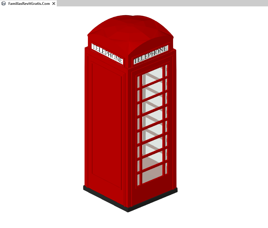 Con su diseño icónico y proporciones realistas, esta cabina puede integrarse en espacios públicos, parques, plazas, avenidas peatonales o incluso interiores temáticos. El nivel de detalle incluye paneles, puertas y estructura metálica, aportando autenticidad a las escenas urbanas que desarrolles en Revit.